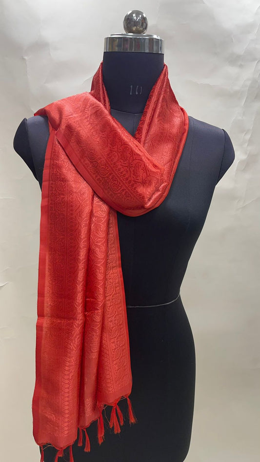 Faishana Presents Red Banarasi Silk Stole with Carry Booti Resham Tassels