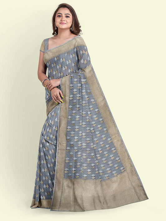 Grey Cotton Blend Banarasi Sarees For Women GEASF_737