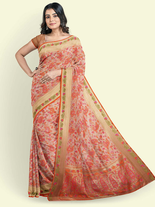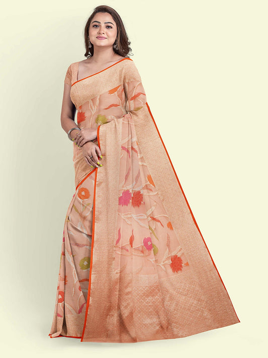 Peach Cotton Blend Banarasi Sarees For Women GEASF_710