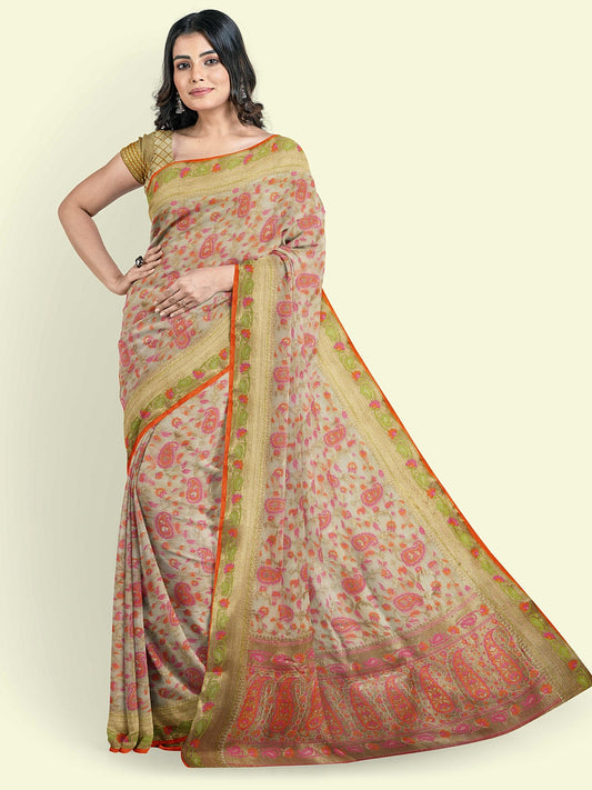 Beige Cotton Blend Banarasi Sarees For Women GEASF_713