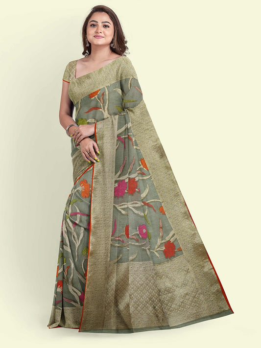 Grey Cotton Blend Banarasi Sarees For Women GEASF_760