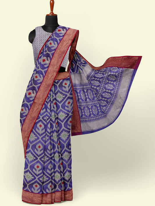 Blue Cotton Blend Banarasi Sarees For Women GEASF_772