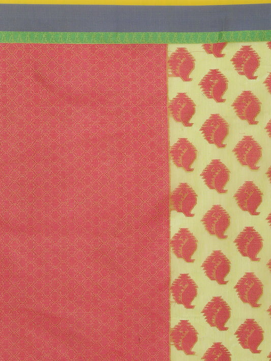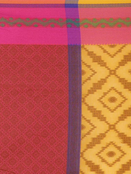 Yellow Cotton Blend Banarasi Sarees For Women GEASF_763