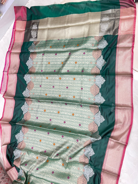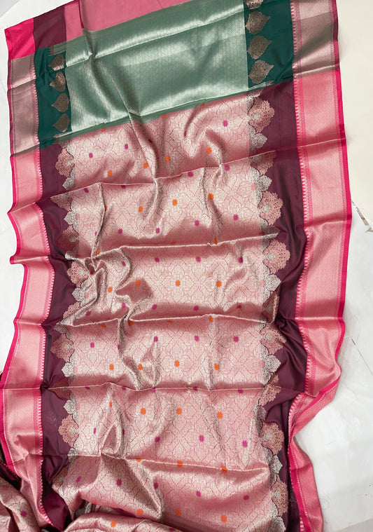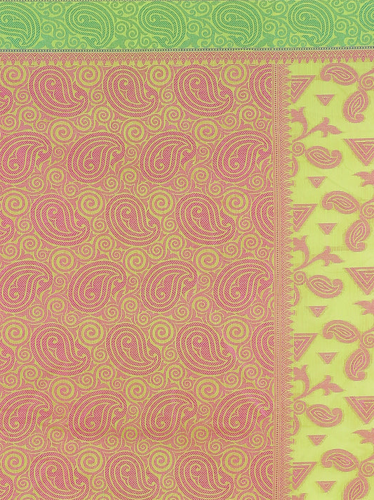 Faishana Presents Green Resham Zari Jaal Zari Banarasi Border With Paisley Pink Pallu And Pink Blouse