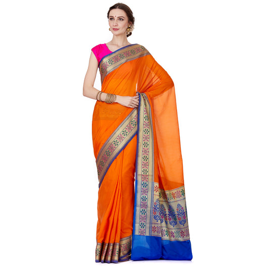 Faishana Orange Solid Silk Blend Saree With Blouse Piece GEJA20