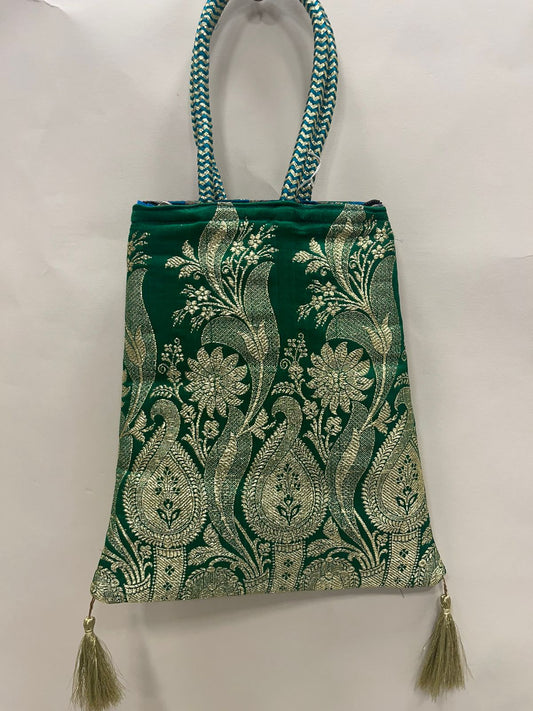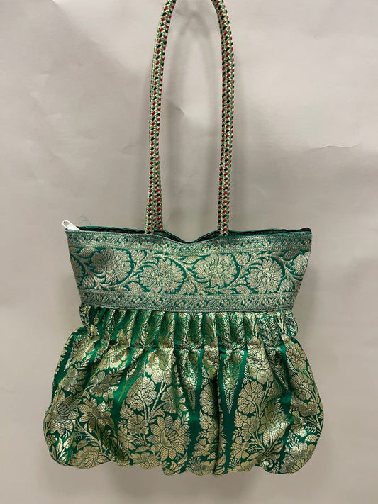 Olive Green Banarasi Trishaped Hand Bag HBG_23