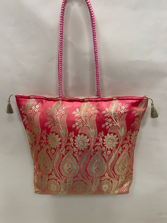Pink Banarasi Trishaped Hand Bag HBG_25