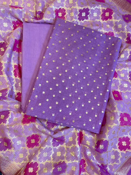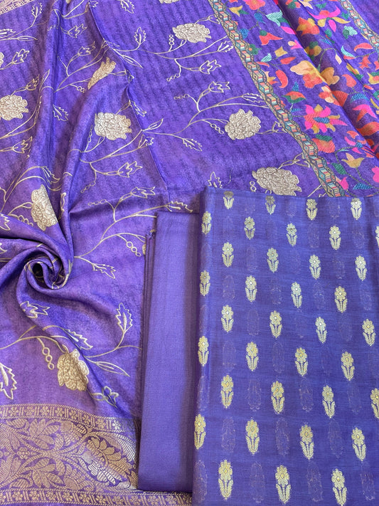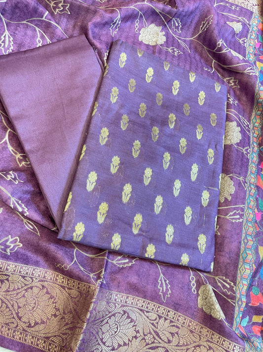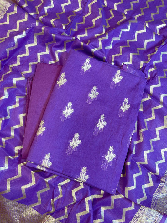 Purple Mercerise Silk Floral Zari Booti with Zig-Zag Dupatta Banarasi Suit 11SKL_MSRS5