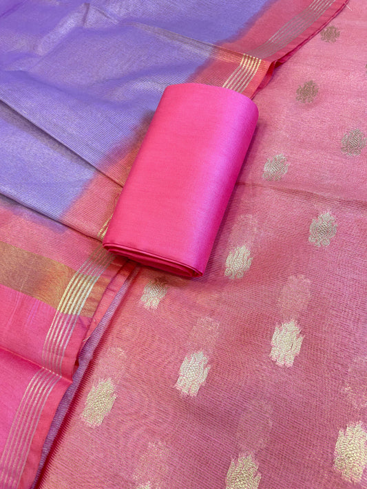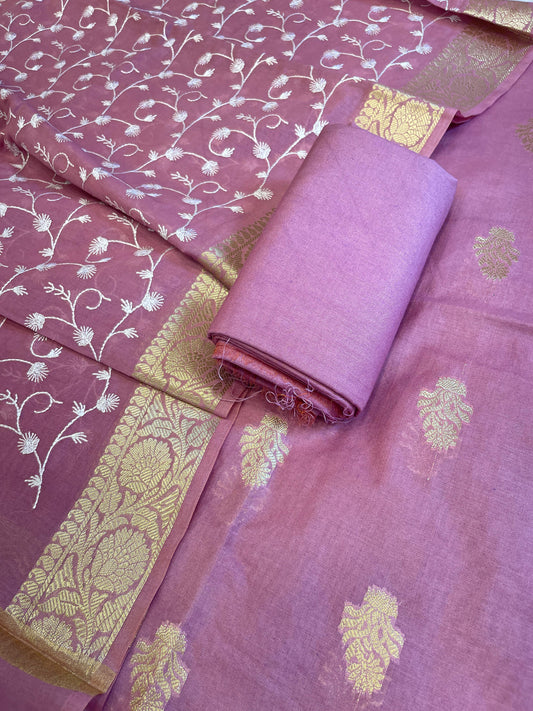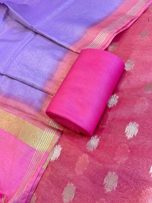 Dark Pink Tissue Silk Zari Booti with Contrast Lavender Dupatta Banarasi Suit 10SKL_TSUS1