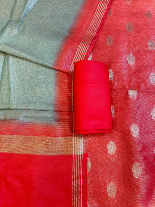 Red Tissue Silk Zari Booti with Contrast Grey Dupatta Banarasi Suit 10SKL_TSUS2
