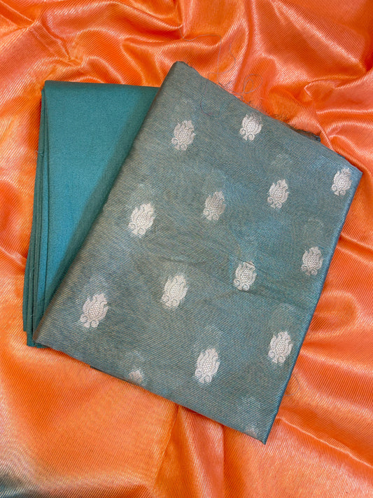 Seagreen Tissue Silk Zari Booti with Contrast Orange Dupatta Banarasi Suit 10SKL_TSUS4