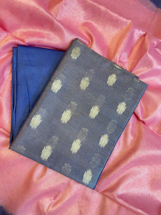 Blue Tissue Silk Zari Booti with Contrast Pink Dupatta Banarasi Suit 10SKL_TSUS5