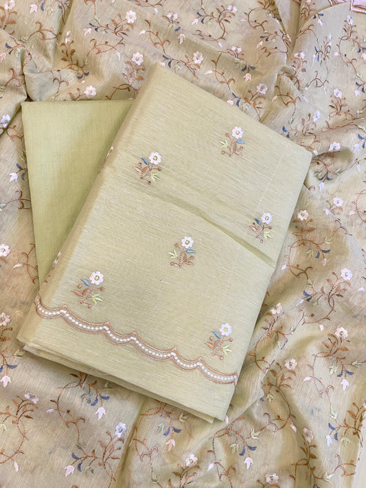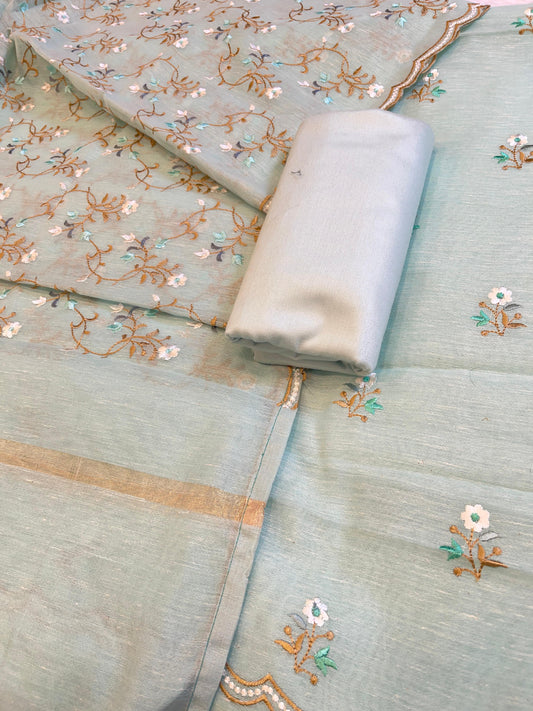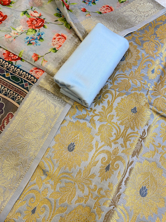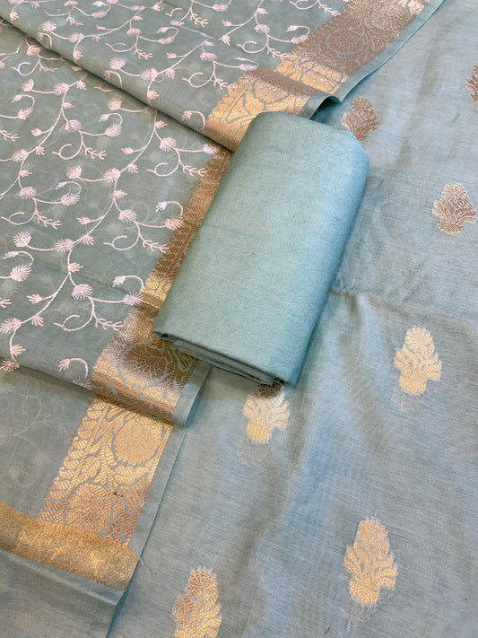 Light Blue Mercerise Silk Floral Zari Booti with Embroidery Dupatta Banarasi Suit 11SKL_MSRS7