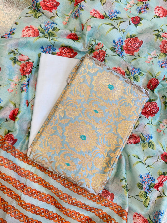 Light Blue Brocade Kimkhab Floral Boota Jaal Banarasi Suit with Digital Print Dupatta 11SKL_BK1