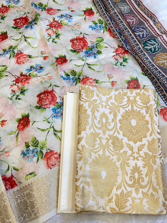 Cream Brocade Kimkhab Floral Boota Jaal Banarasi Suit with Digital Print Dupatta 11SKL_BK3