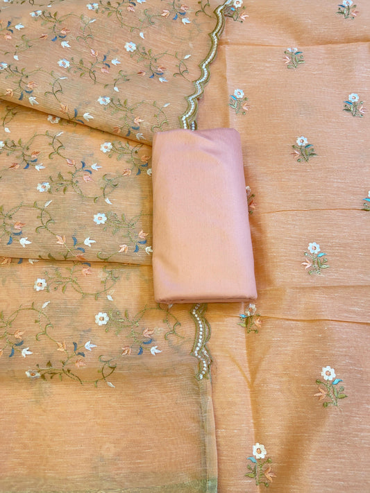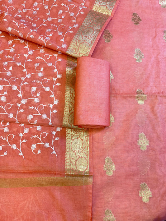 Peach Mercerise Silk Floral Zari Booti with Embroidery Dupatta Banarasi Suit 11SKL_MSRS8
