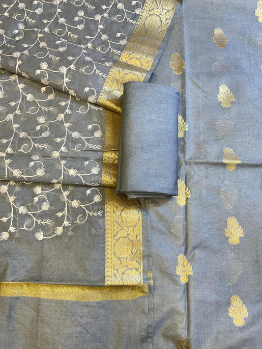 Grey Mercerise Silk Floral Zari Booti with Embroidery Dupatta Banarasi Suit 11SKL_MSRS10
