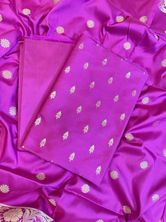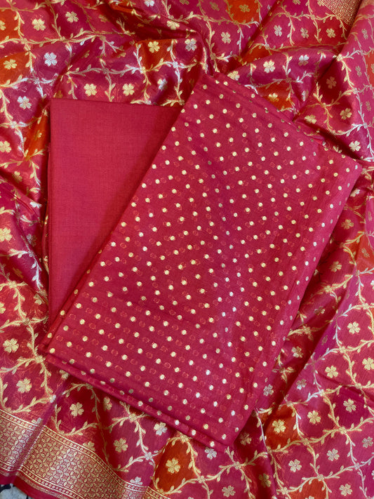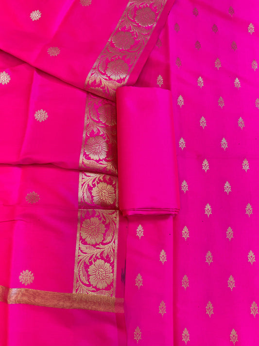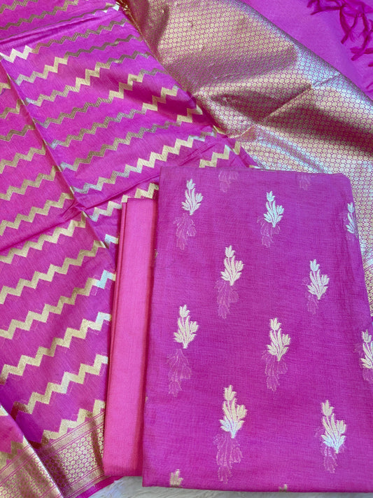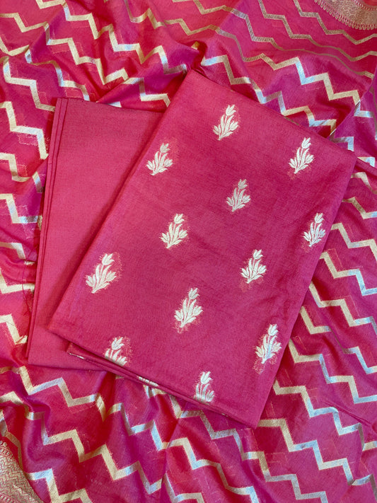 Dark Pink Mercerise Silk Floral Zari Booti with Zig-Zag Dupatta Banarasi Suit 11SKL_MSRS3