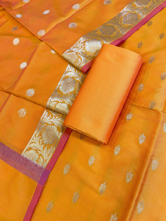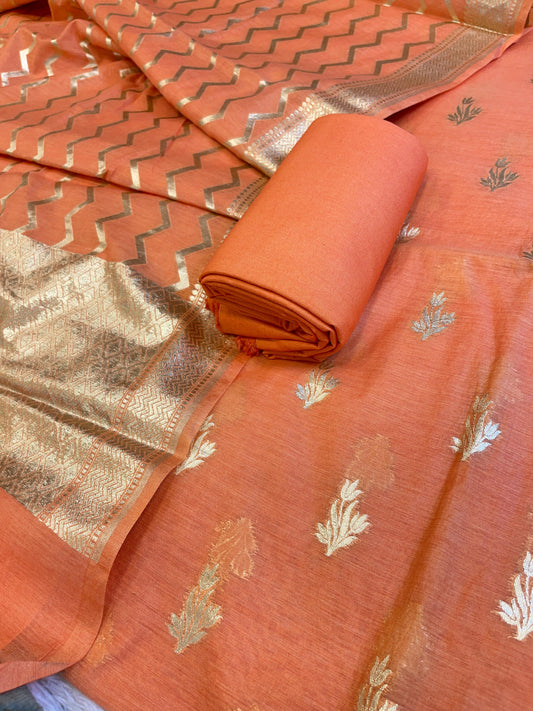 Peach Mercerise Silk Floral Zari Booti with Zig-Zag Dupatta Banarasi Suit 11SKL_MSRS2