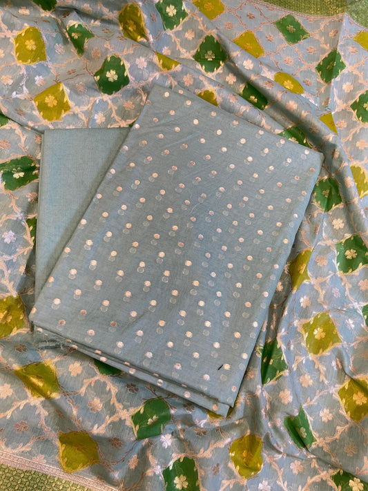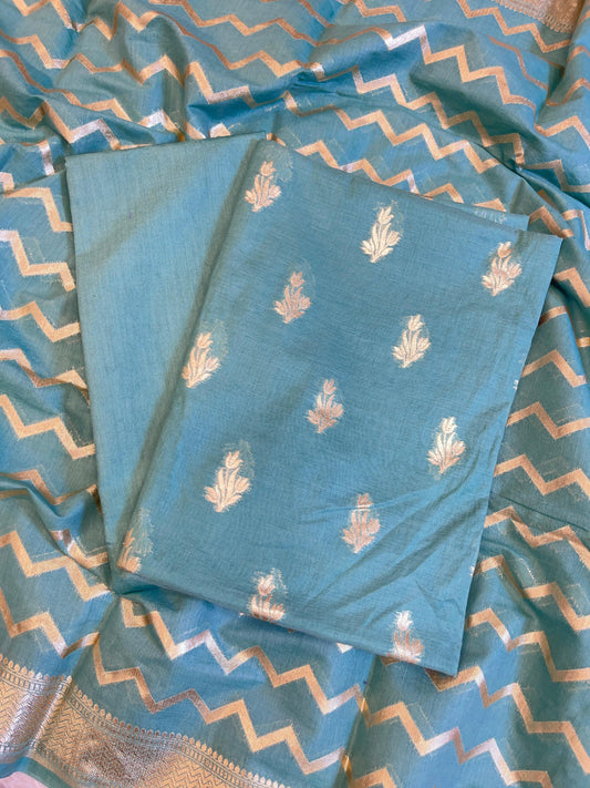 Seagreen Mercerise Silk Floral Zari Booti with Zig-Zag Dupatta Banarasi Suit 11SKL_MSRS4