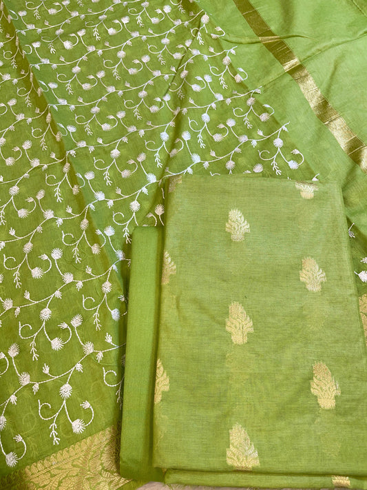 Green Mercerise Silk Floral Zari Booti with Embroidery Dupatta Banarasi Suit 11SKL_MSRS6