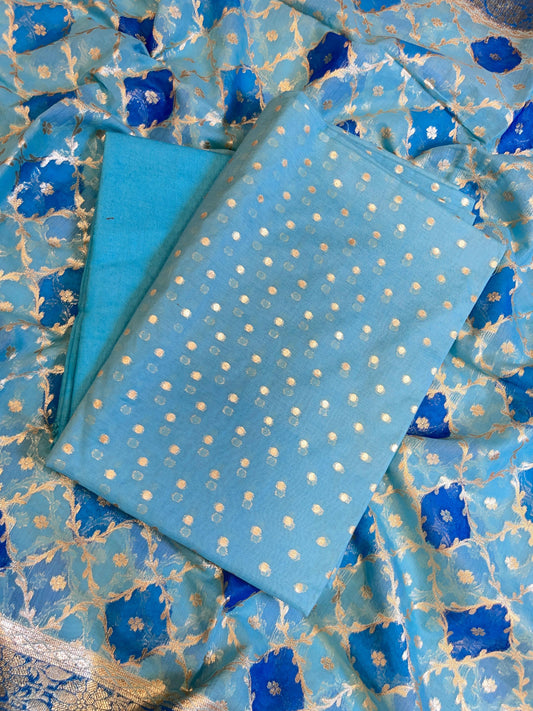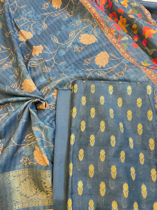 Blue Mercerise Silk Chunri Zari Booti Banarasi Suit with Rangkaat Dupatta 125SKL_MSRS1
