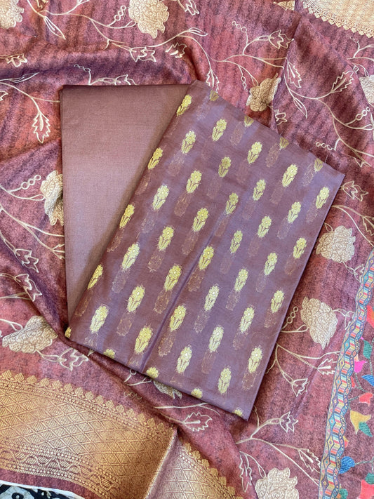 Brown Cotton Mercerise Zari Booti Banarasi Suit with Digital Print Dupatta 10IM_CMP2