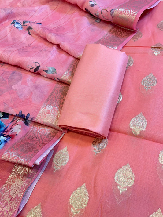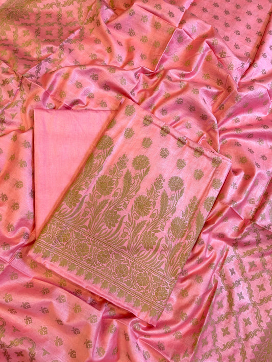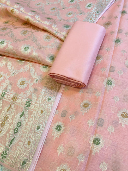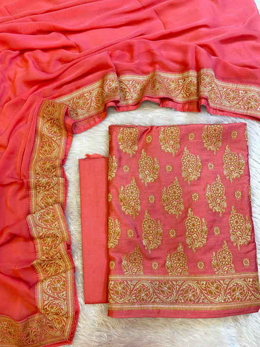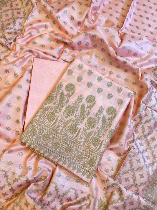 Peach Cotton Dyable Floral Zari Stripe Banarasi Suit 950SHL_CS1