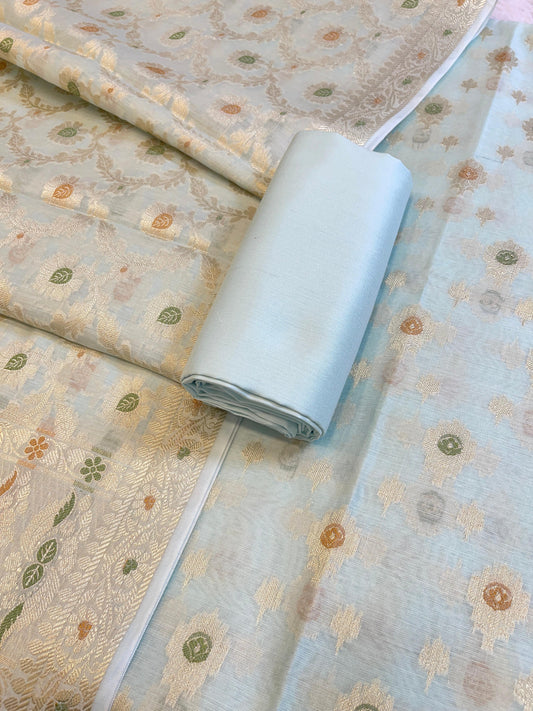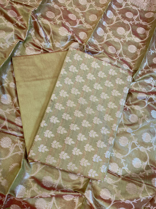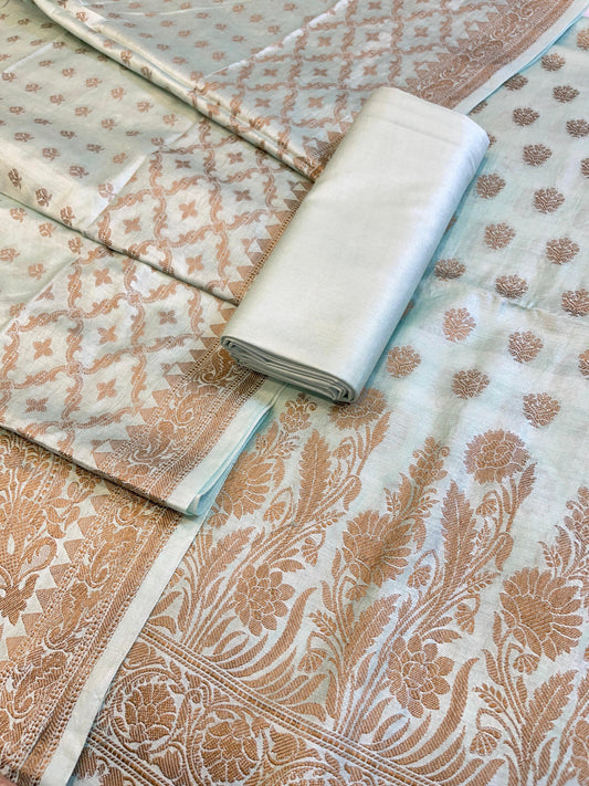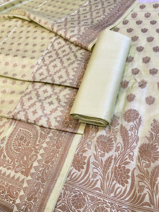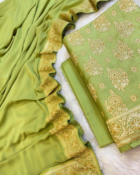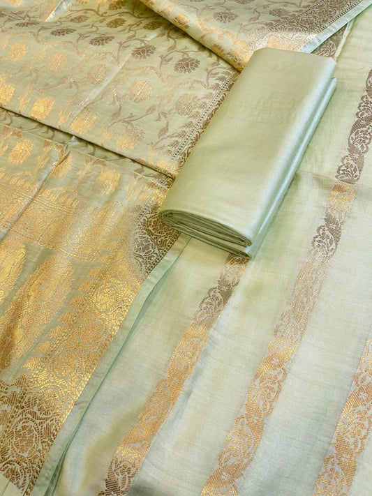 Pista Green Cotton Dyable Floral Zari Stripe Banarasi Suit 950SHL_CS3