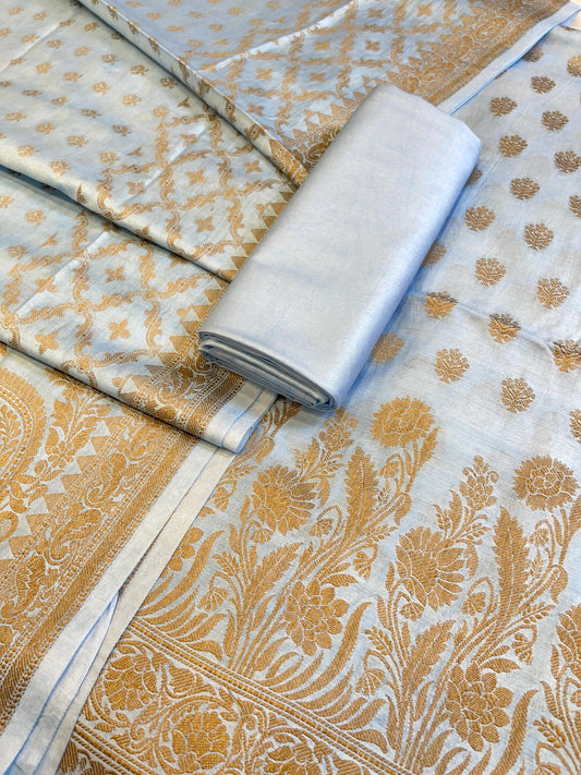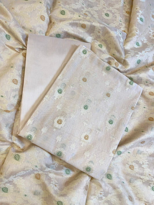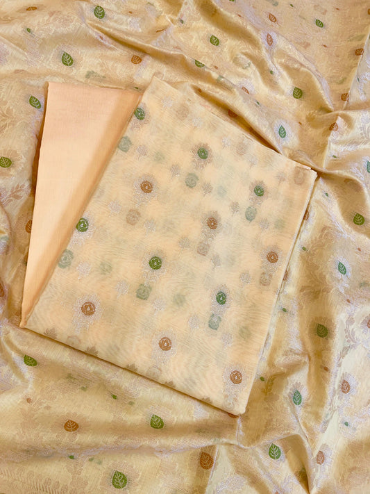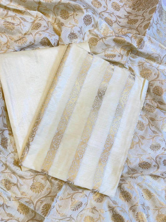 Cream Cotton Dyable Floral Zari Stripe Banarasi Suit 950SHL_CS5