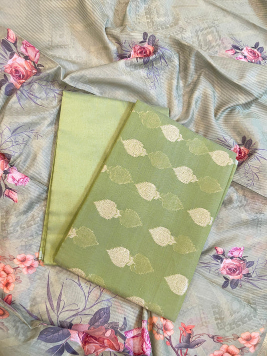 Pista Green Floral Zari Booti with Digital Print Dupatta Banarasi Suit 12SHL_CP1