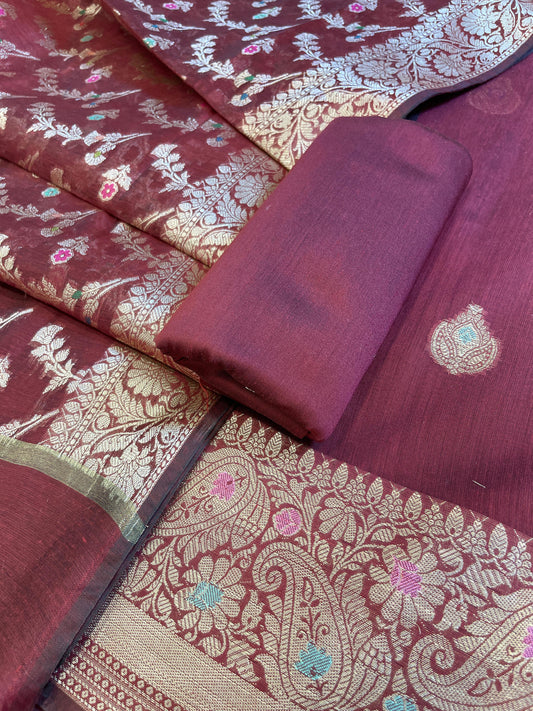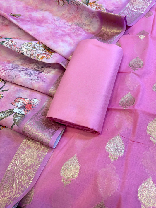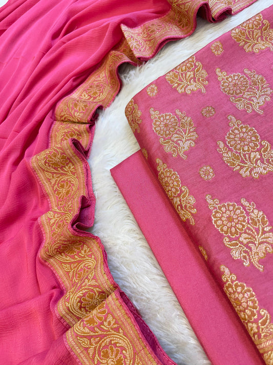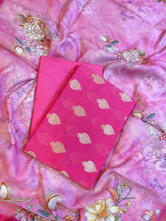 Dark Pink Floral Zari Booti with Digital Print Dupatta Banarasi Suit 12SHL_CP8