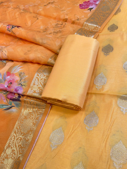 Orange Floral Zari Booti with Digital Print Dupatta Banarasi Suit 12SHL_CP3