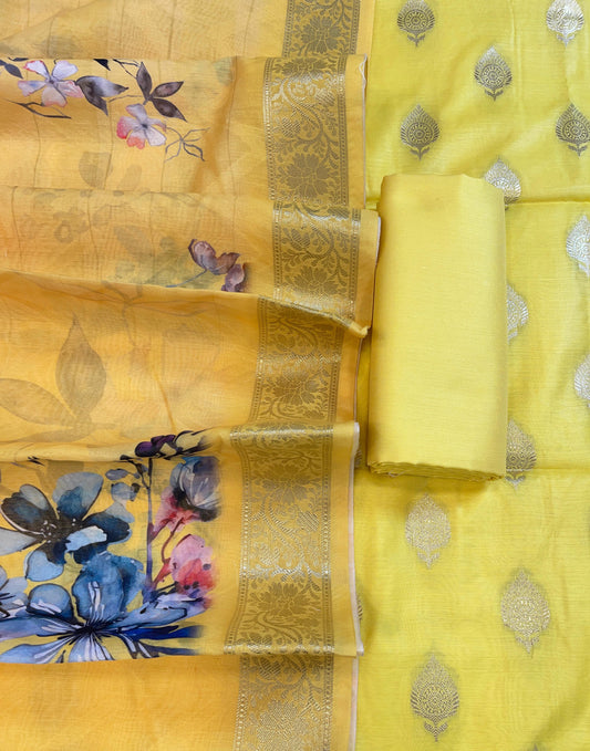 Yellow Floral Zari Booti with Digital Print Dupatta Banarasi Suit 12SHL_CP6
