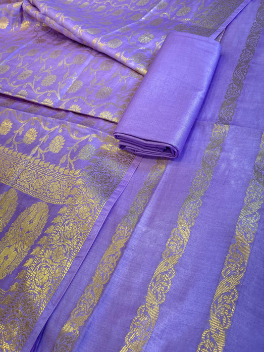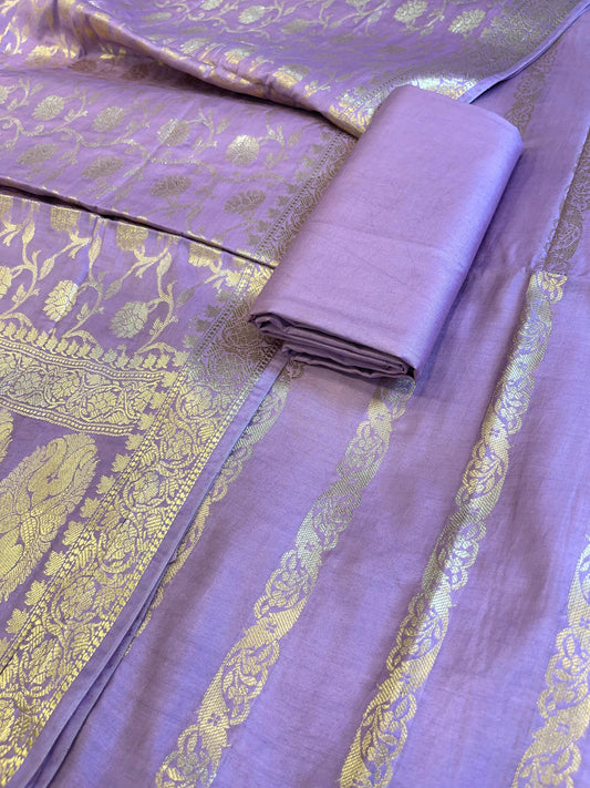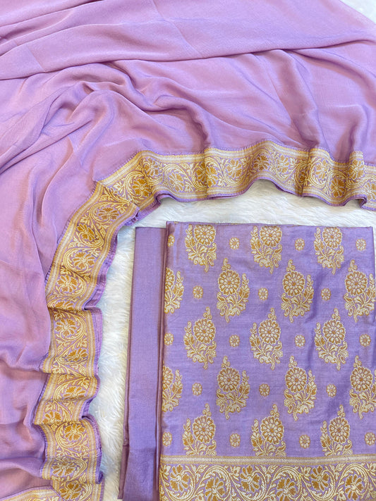 Lavender Cotton Dyable Floral Zari Stripe Banarasi Suit 950SHL_CS4