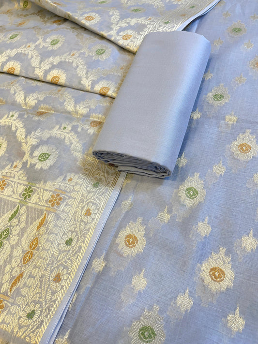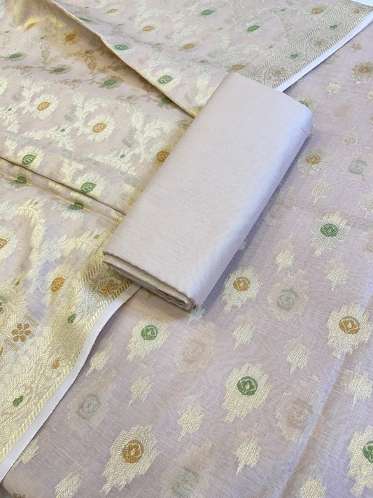 Light Purple Cotton Dyable Floral Zari Stripe Banarasi Suit 950SHL_CS2