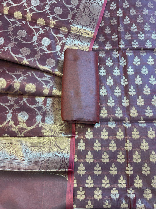 Wine Cotton Leaf Zari Booti Banarasi Suit 950SHL_CT2