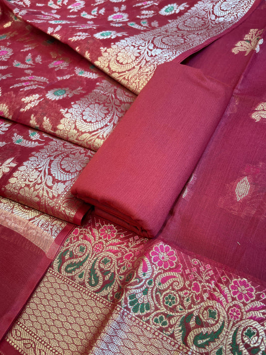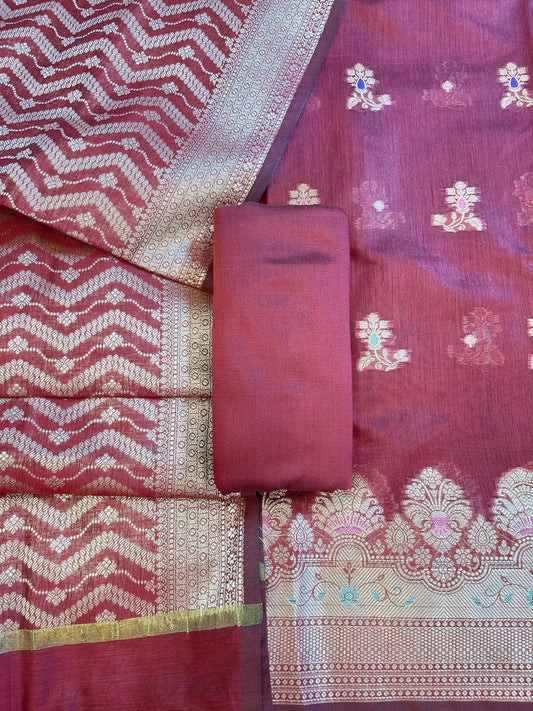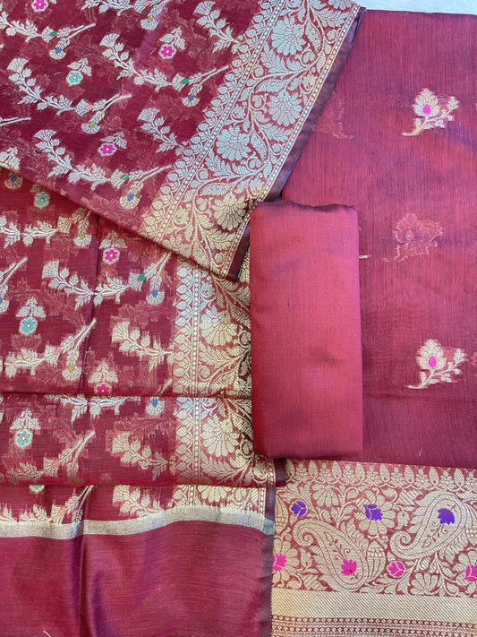 Maroon Cotton Resham Mina Floral Booti Paisley Mina Border Banarasi Suit 625SHL_CT22