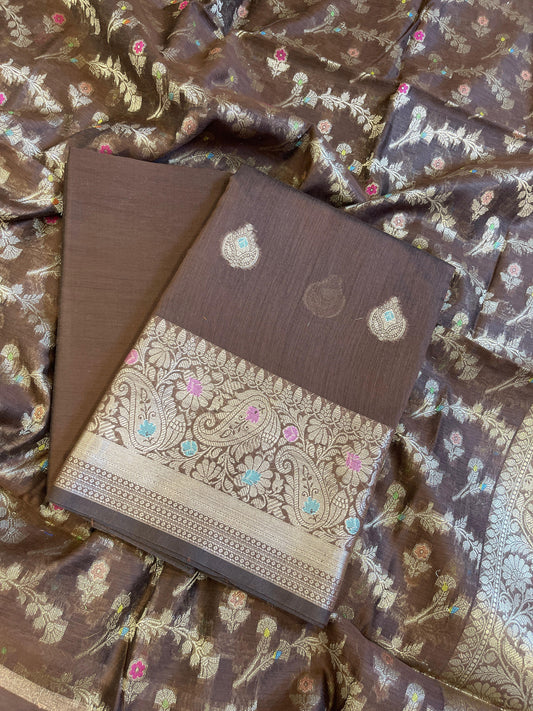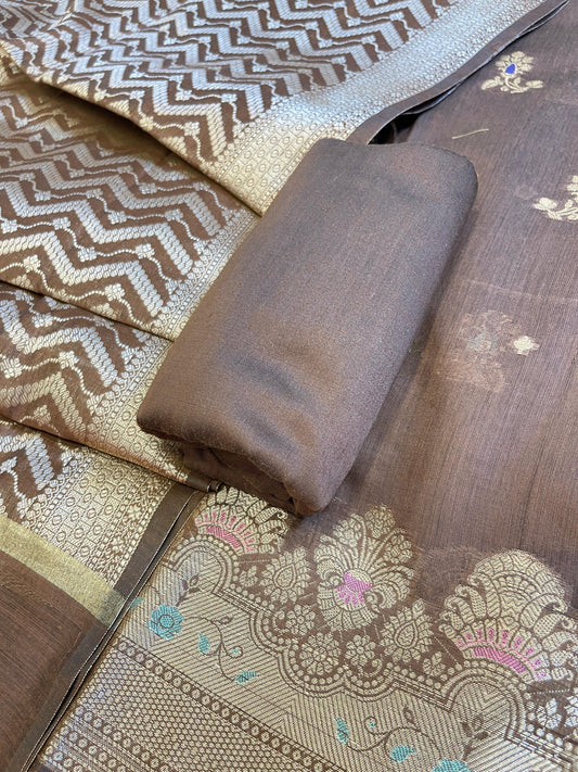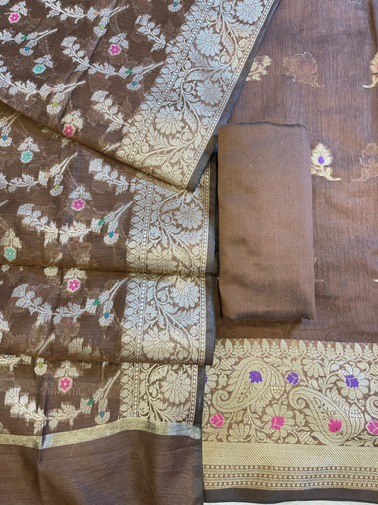 Brown Cotton Resham Mina Floral Booti Paisley Mina Border Banarasi Suit 625SHL_CT25