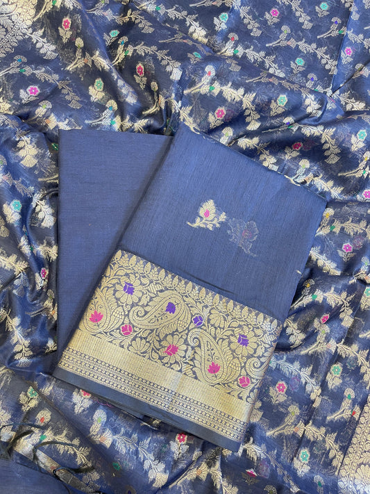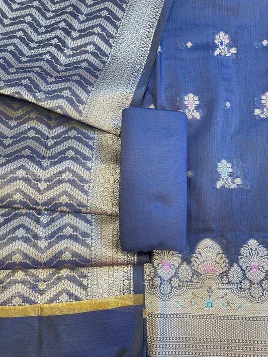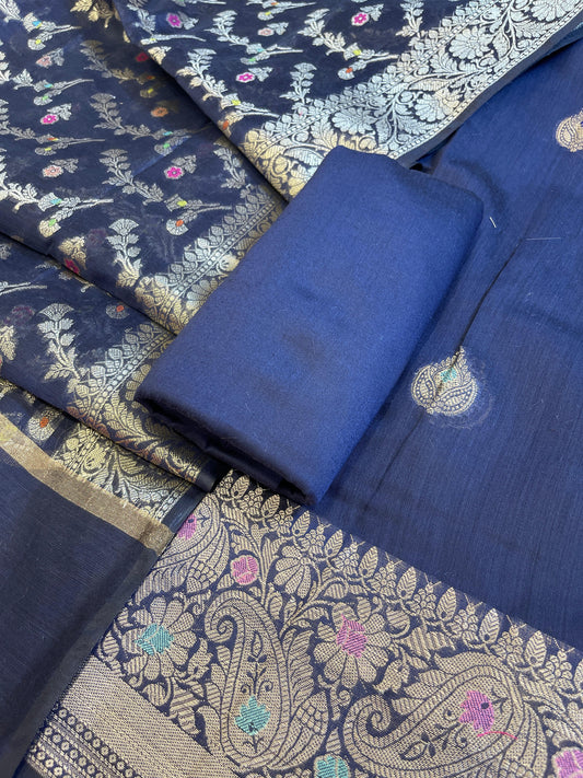 Navy Blue Cotton Resham Mina Floral Booti Paisley Mina Border Banarasi Suit 625SHL_CT26