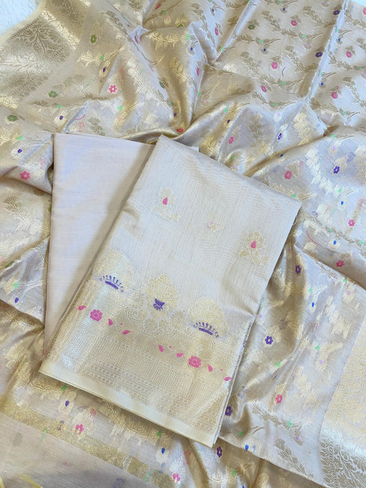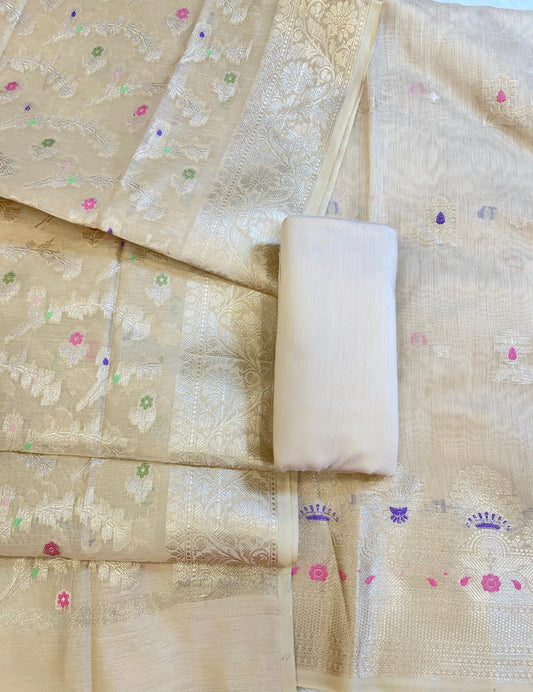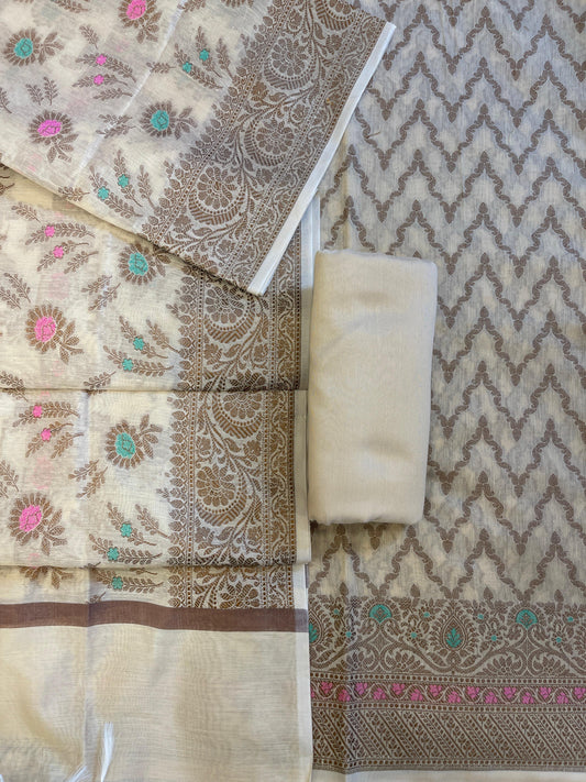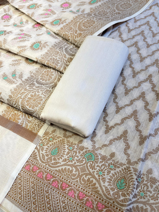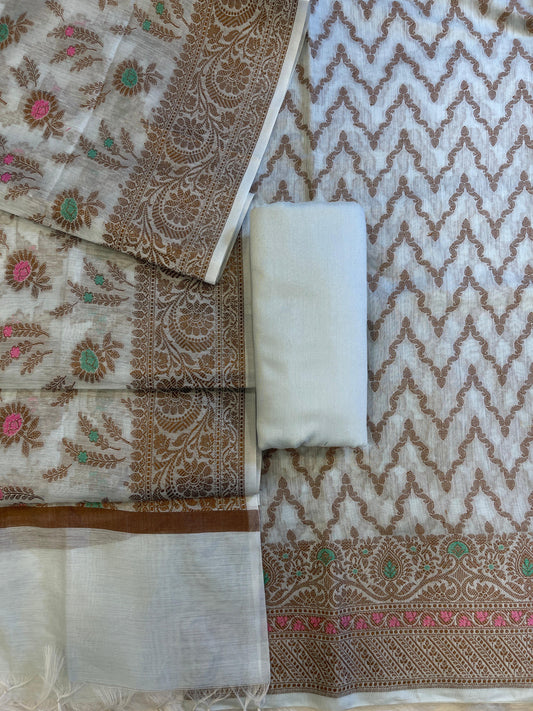 Beige Cotton Resham Zari Zig-Zag Banarasi Suit 625SHL_CT27