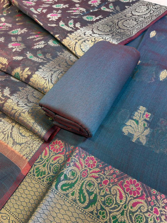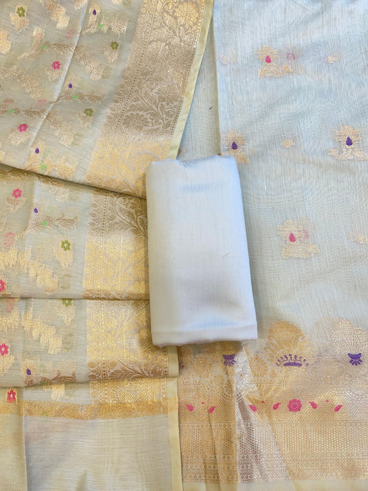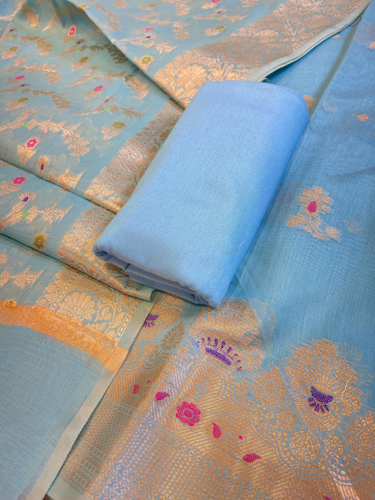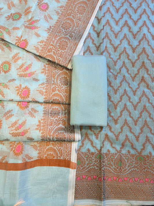 Light Blue Cotton Resham Zari Zig-Zag Banarasi Suit 625SHL_CT28