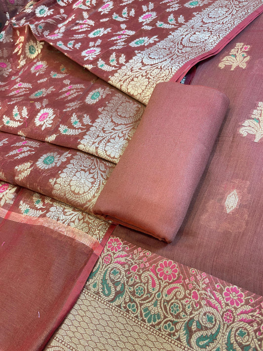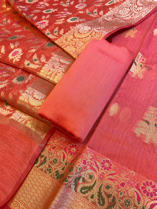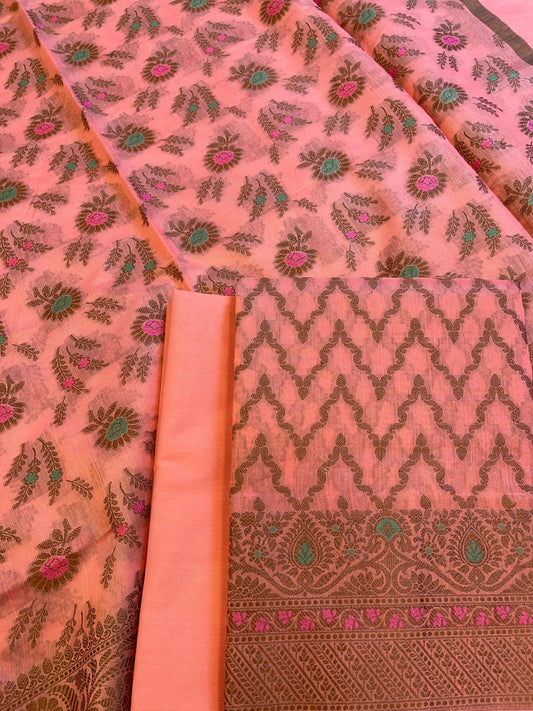 Peach Cotton Resham Zari Zig-Zag Banarasi Suit 625SHL_CT30
