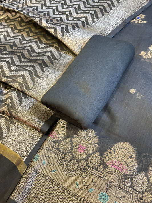 Black Cotton Resham Mina Floral Booti Paisley Mina Border Banarasi Suit 625SHL_CT24