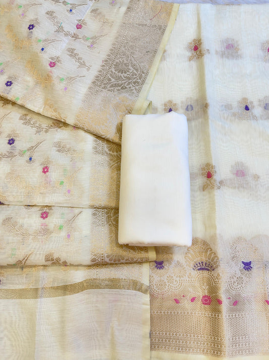 Off white Cotton Resham Zari Zig-Zag Banarasi Suit 625SHL_CT31