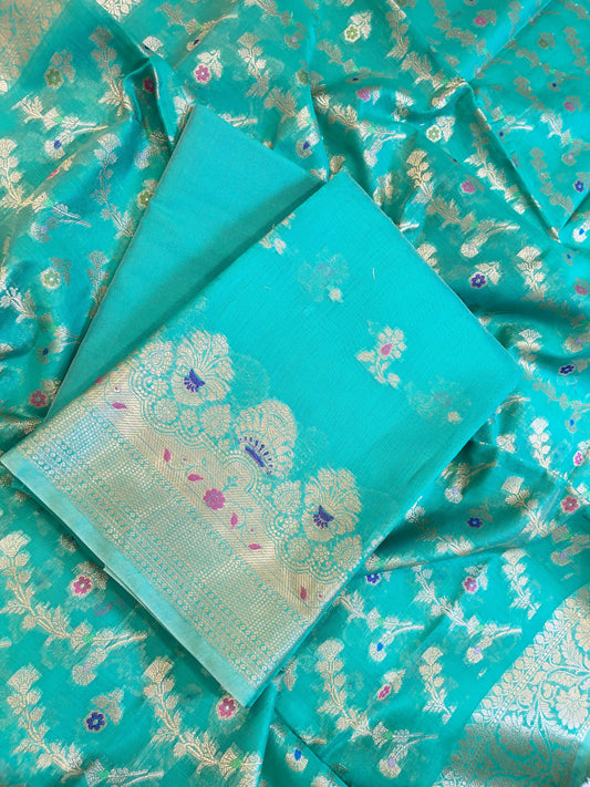 Seagreen Cotton Resham Minakari Floral Zari Booti Banarasi Suit 625SHL_CT45