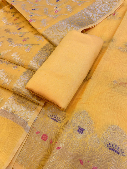 Mustard Gold Cotton Resham Mina Floral Boota Paisley Border Banarasi Suit 625SHL_CT33