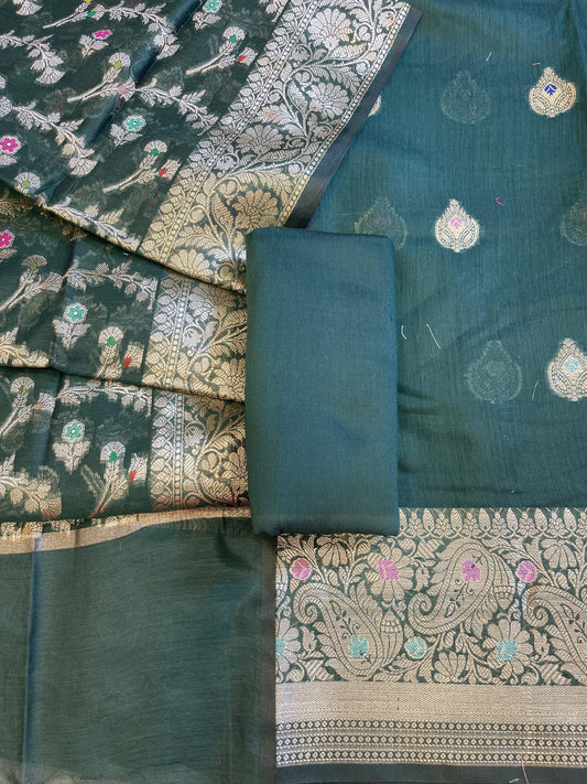 Darkgreen Cotton Resham Mina Floral Booti Paisley Mina Border Banarasi Suit 625SHL_CT23