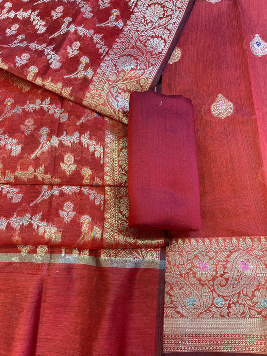 Red Cotton Resham Mina Floral Boota Paisley Border Banarasi Suit 625SHL_CT38