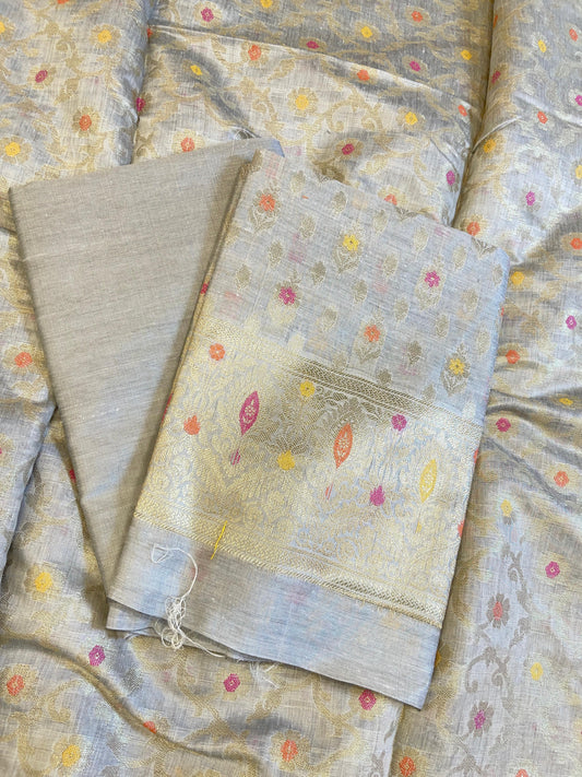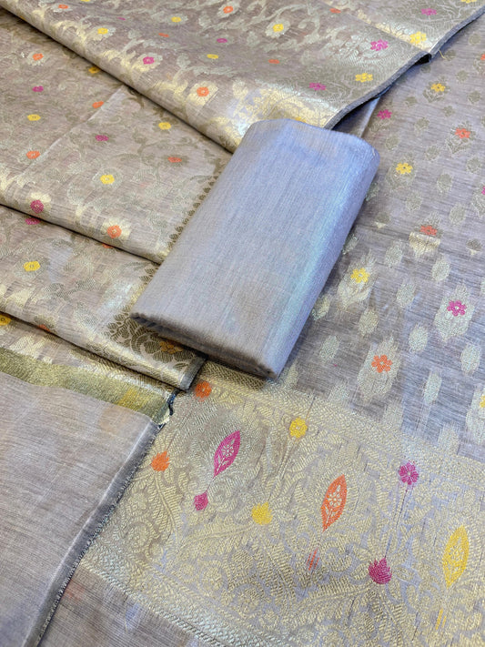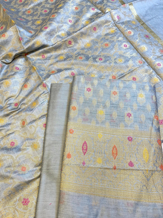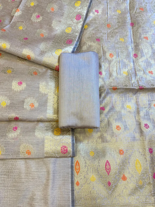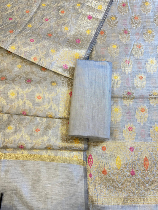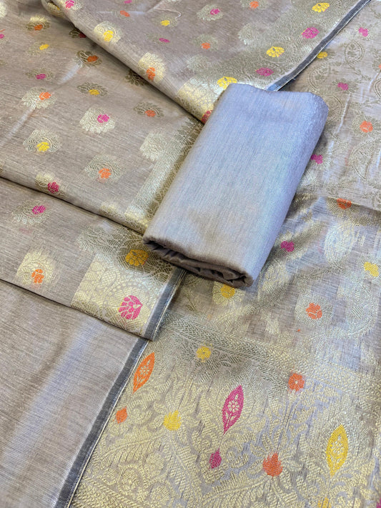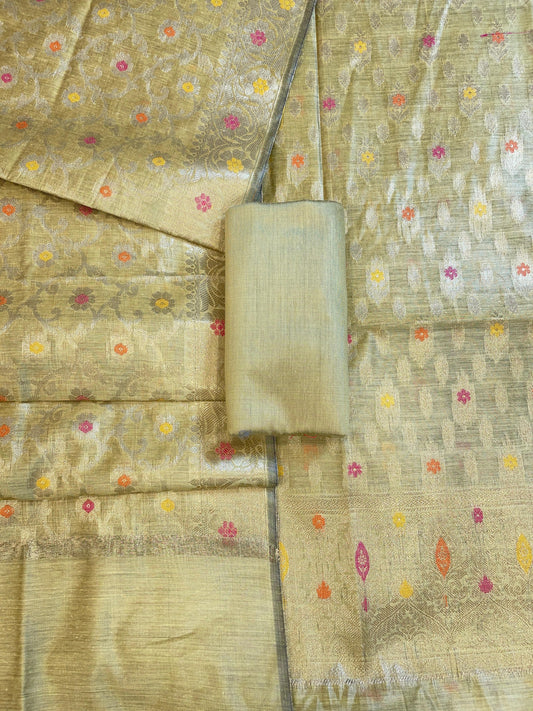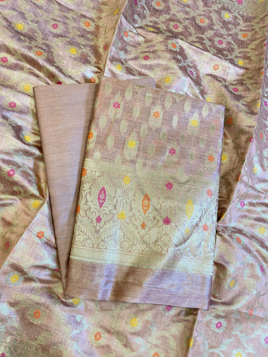 Beige Semi Katan Silk Handloom Banarasi 3 pcs Suit Set MUB_SK100